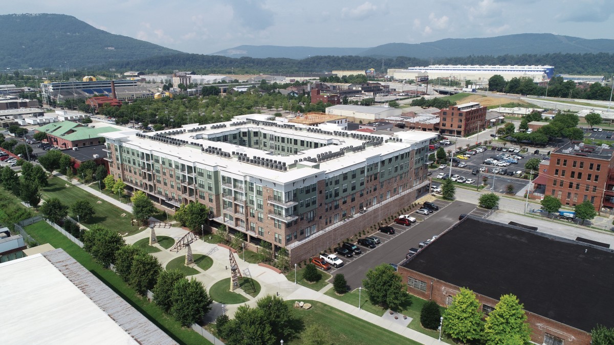 1400 Chestnut is a pedestrian-friendly community within walking distance to numerous restaurants, entertainment, and shopping options with easy access to Main Terrace Park, the Choo Choo, and Finley Stadium. Located in the trendy and vibrant Southside market of downtown Chattanooga, 1400 Chestnut is a four-story 200-unit residential community featuring one- and two-bedroom options.